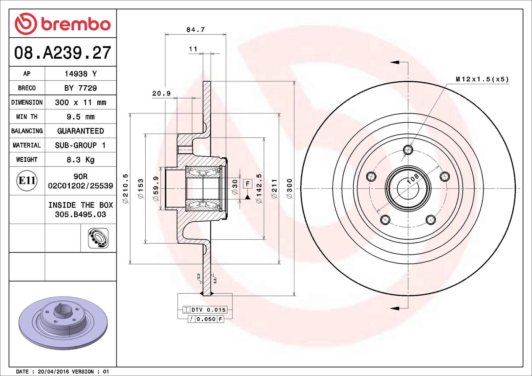 BREMBO 08.A239.27 - Brzdový kotúč