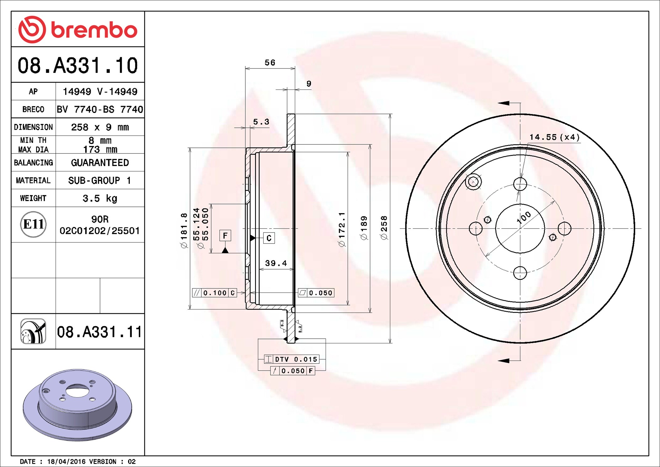 BREMBO 08.A331.11 - Brzdový kotúč