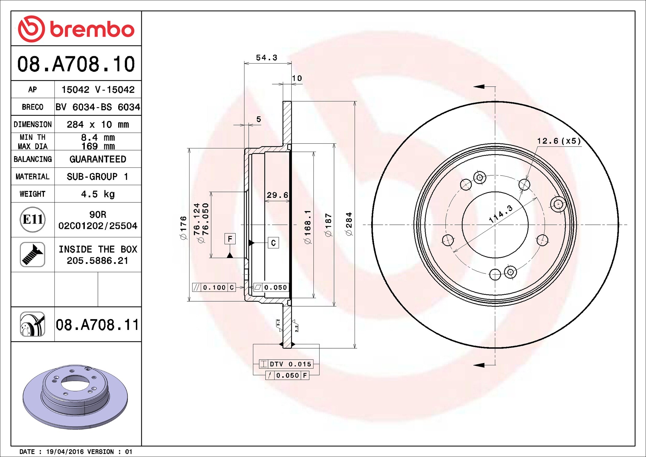 BREMBO 08.A708.11 - Brzdový kotúč