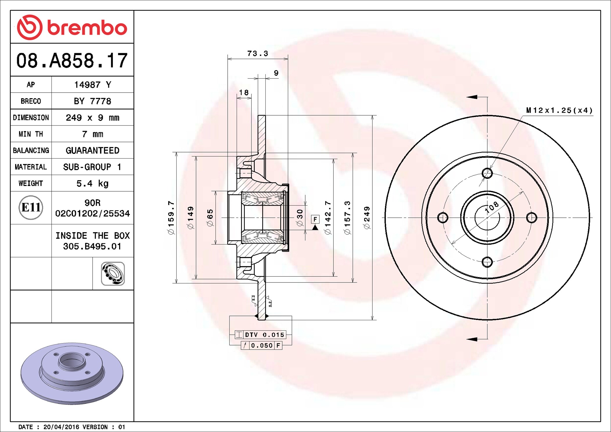 BREMBO 08.A858.17 - Brzdový kotúč