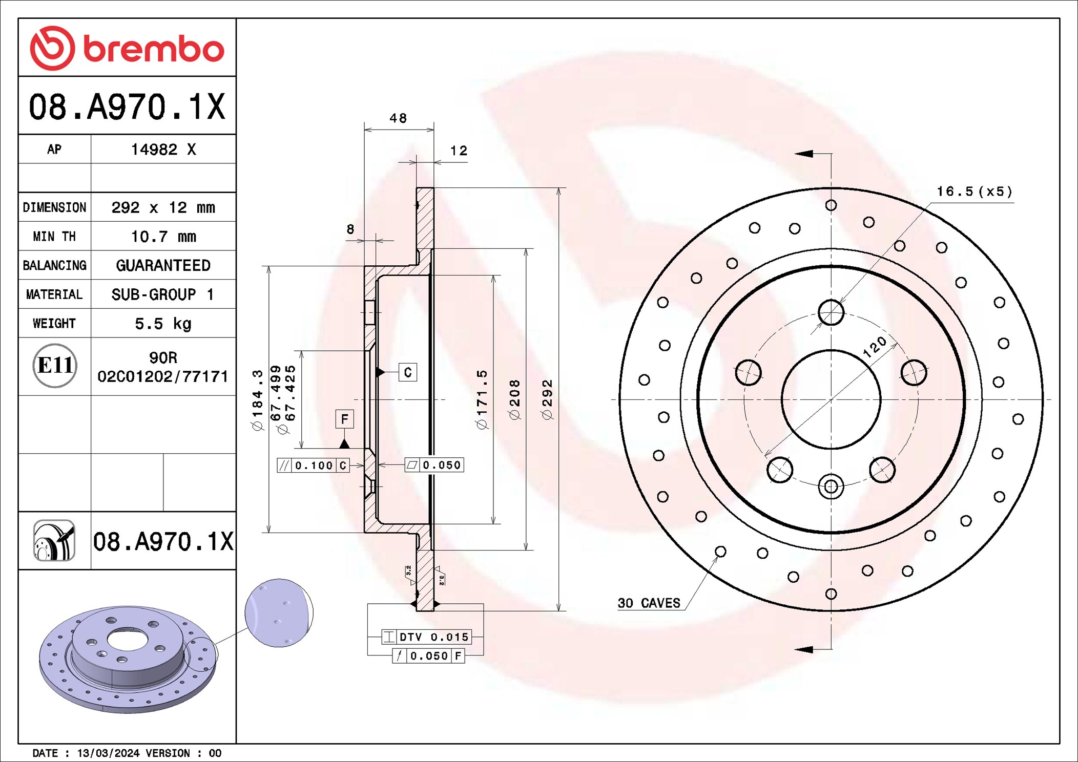 BREMBO 08.A970.1X - Brzdový kotúč