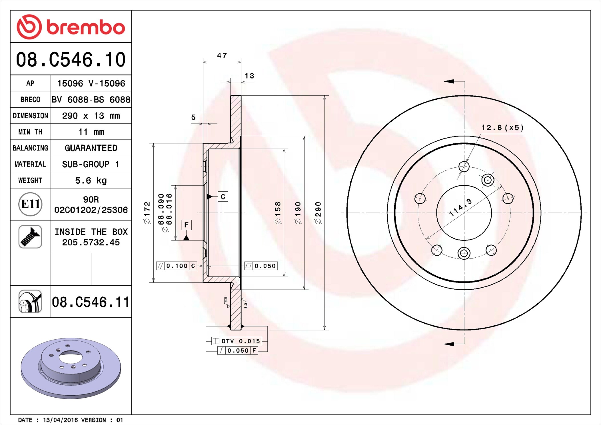 BREMBO 08.C546.11 - Brzdový kotúč