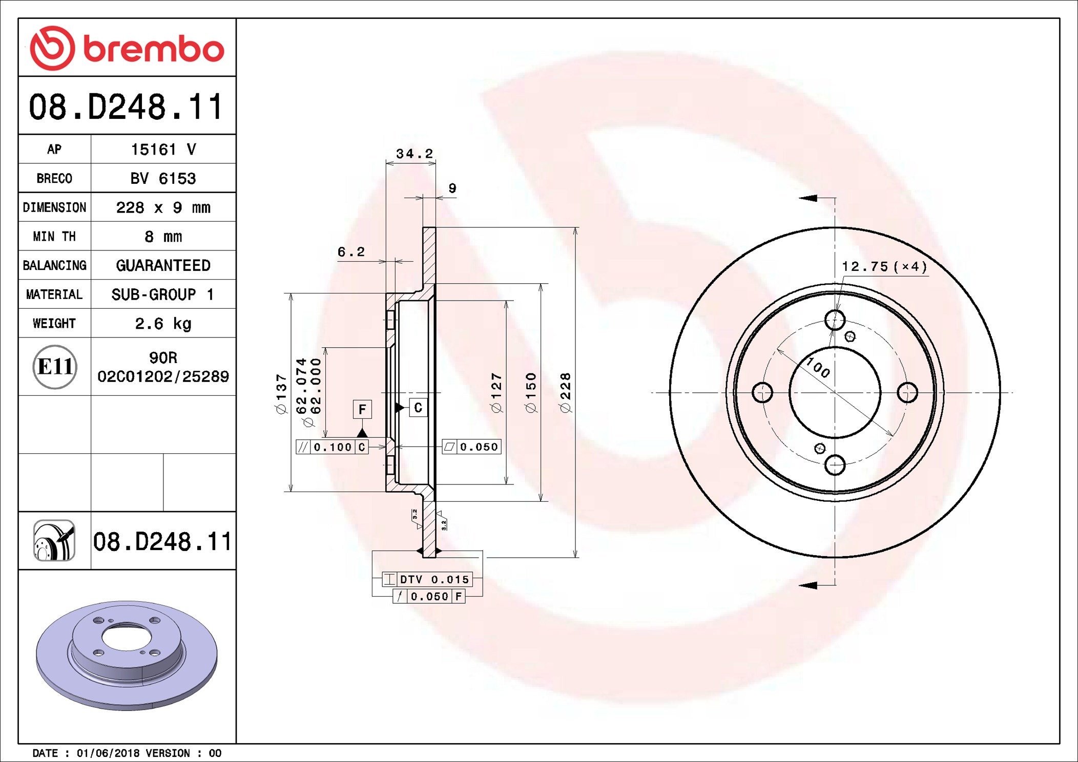 BREMBO 08.D248.11 - Brzdový kotúč