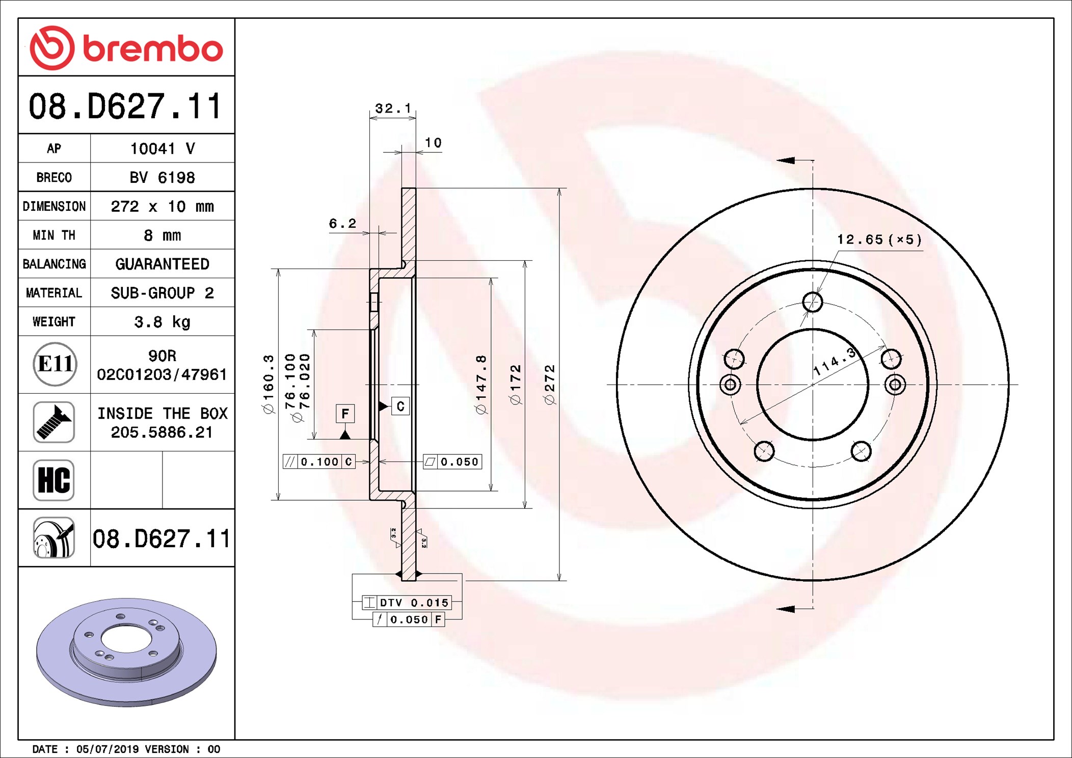 BREMBO 08.D627.11 - Brzdový kotúč