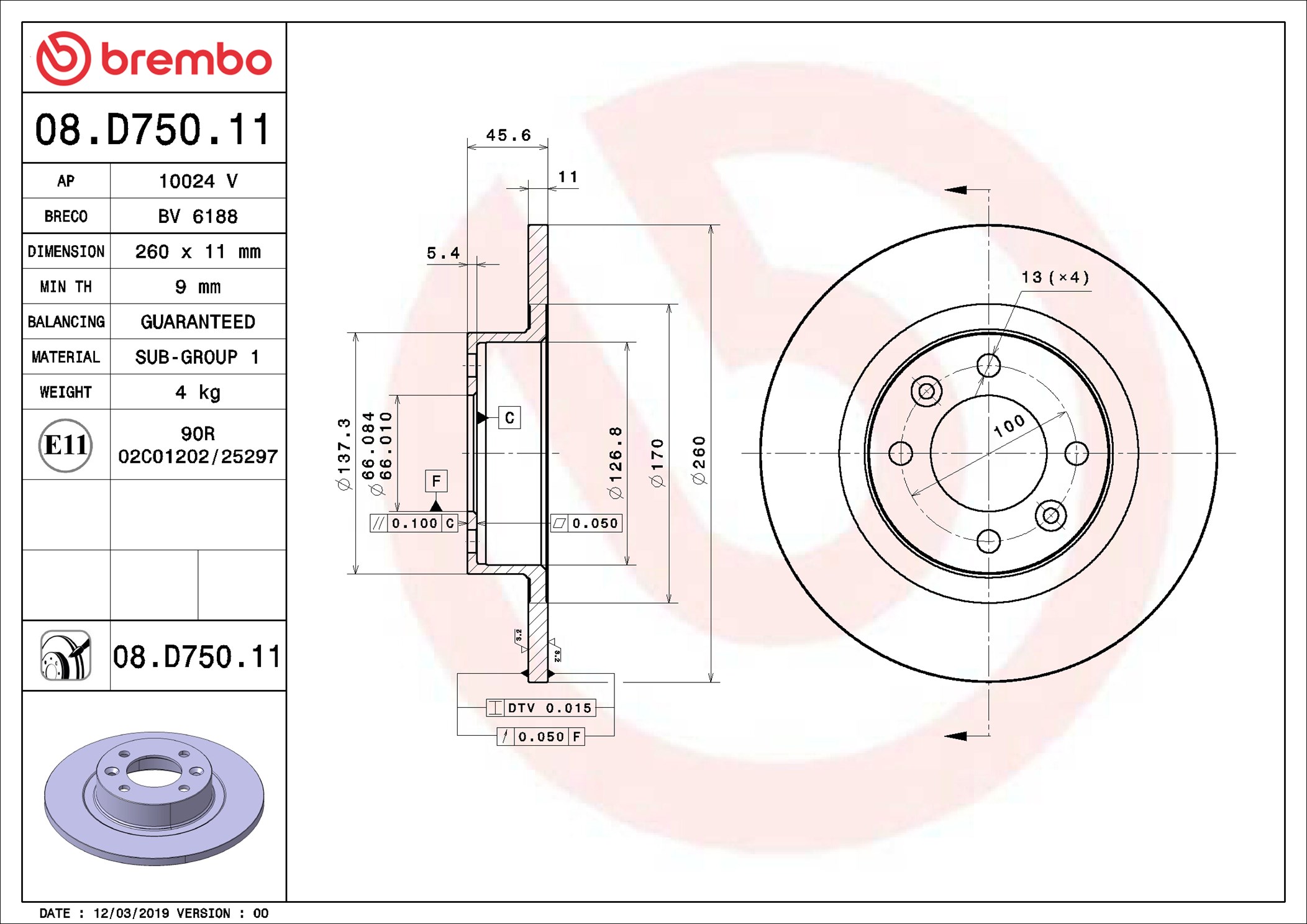 BREMBO 08.D750.11 - Brzdový kotúč