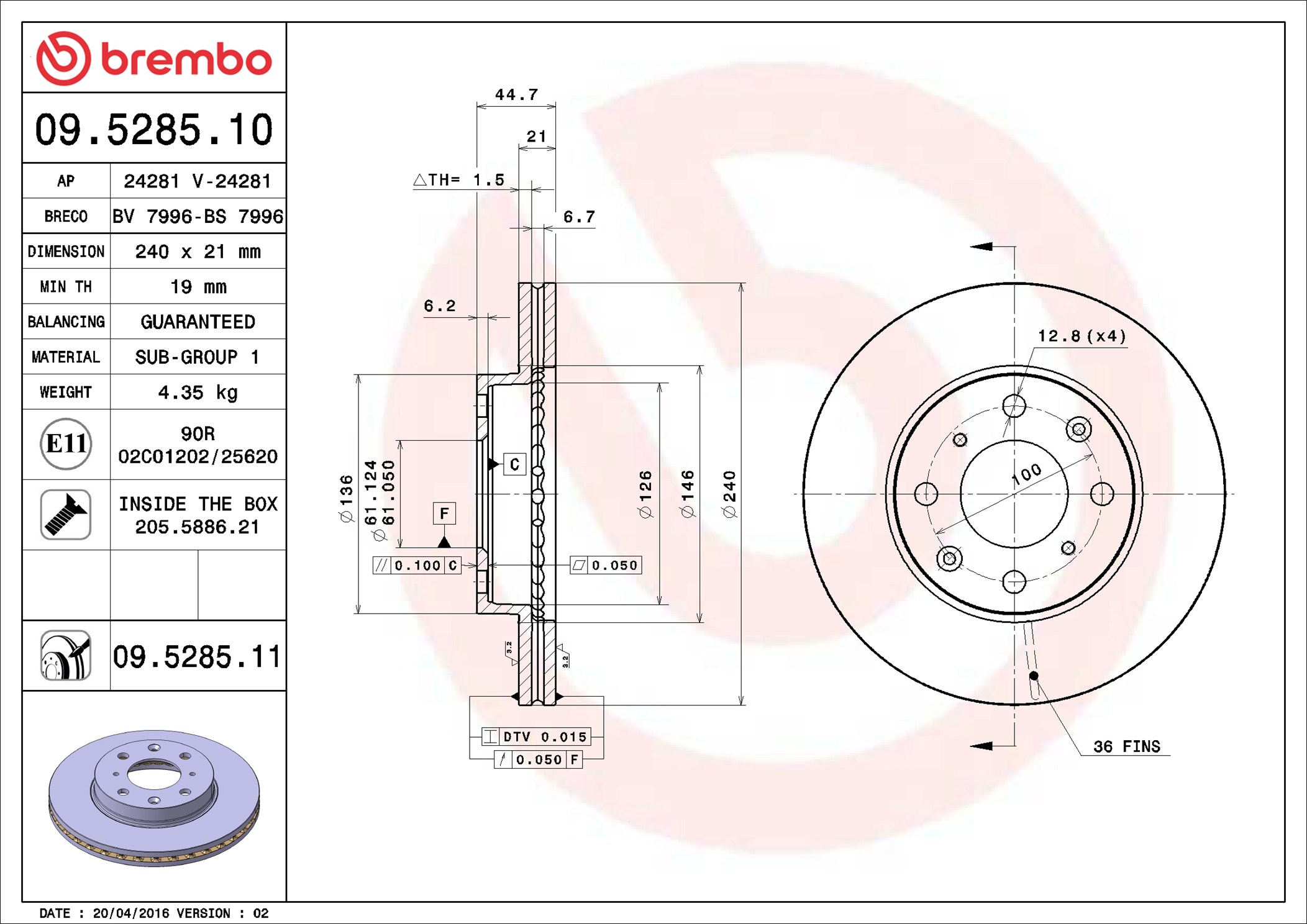 BREMBO 09.5285.75