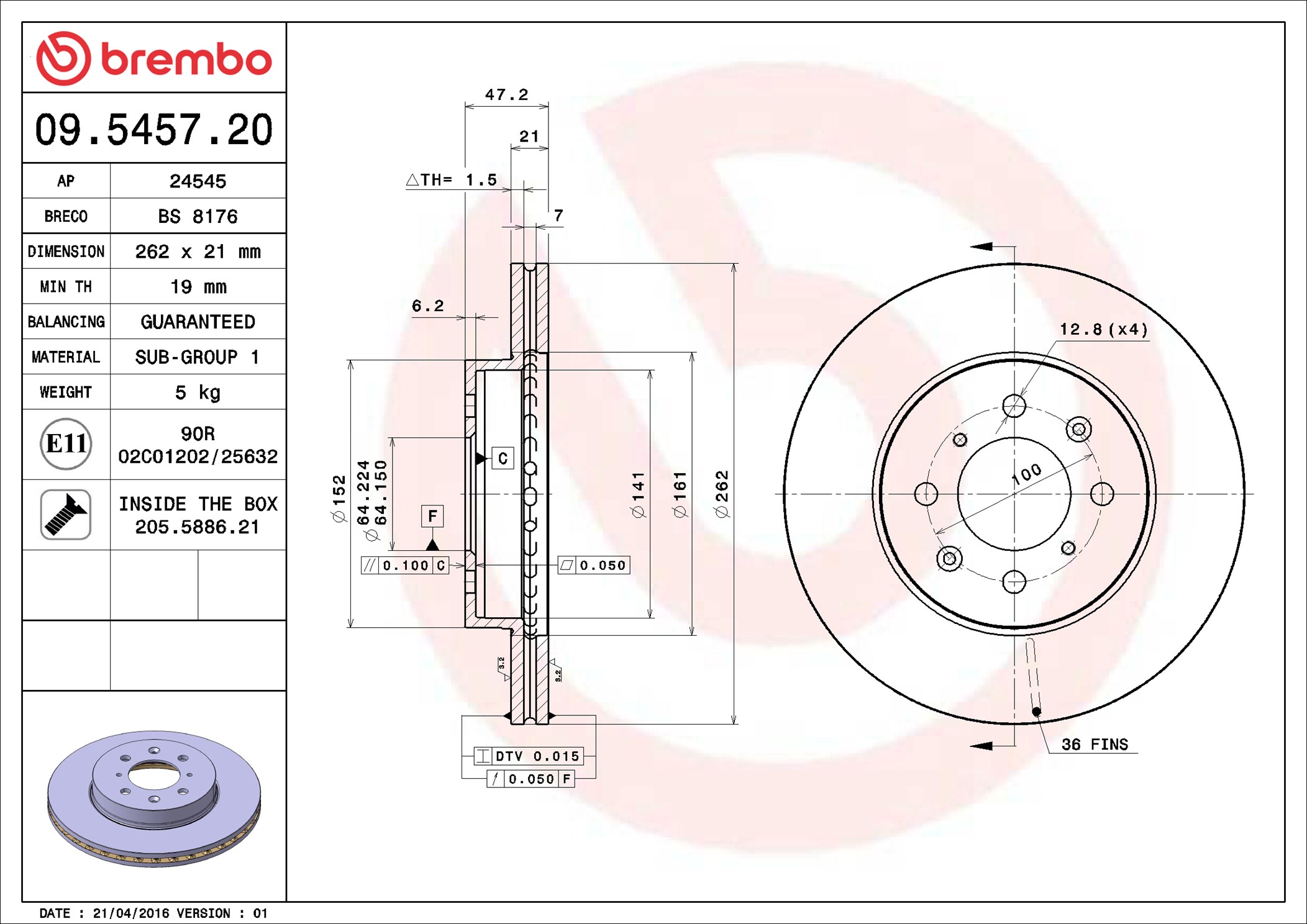 BREMBO 09.5457.20 - Brzdový kotúč