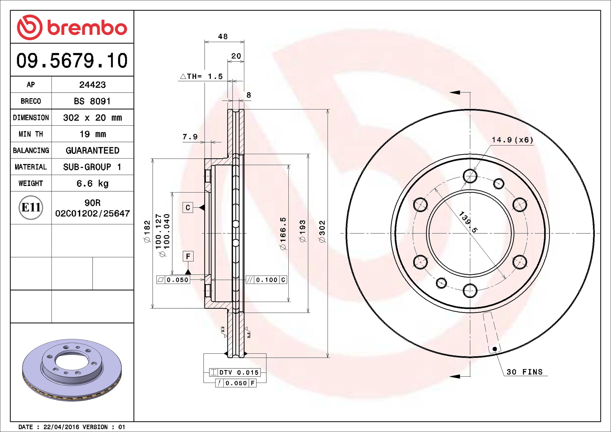 BREMBO 09.5679.10 - Brzdový kotúč