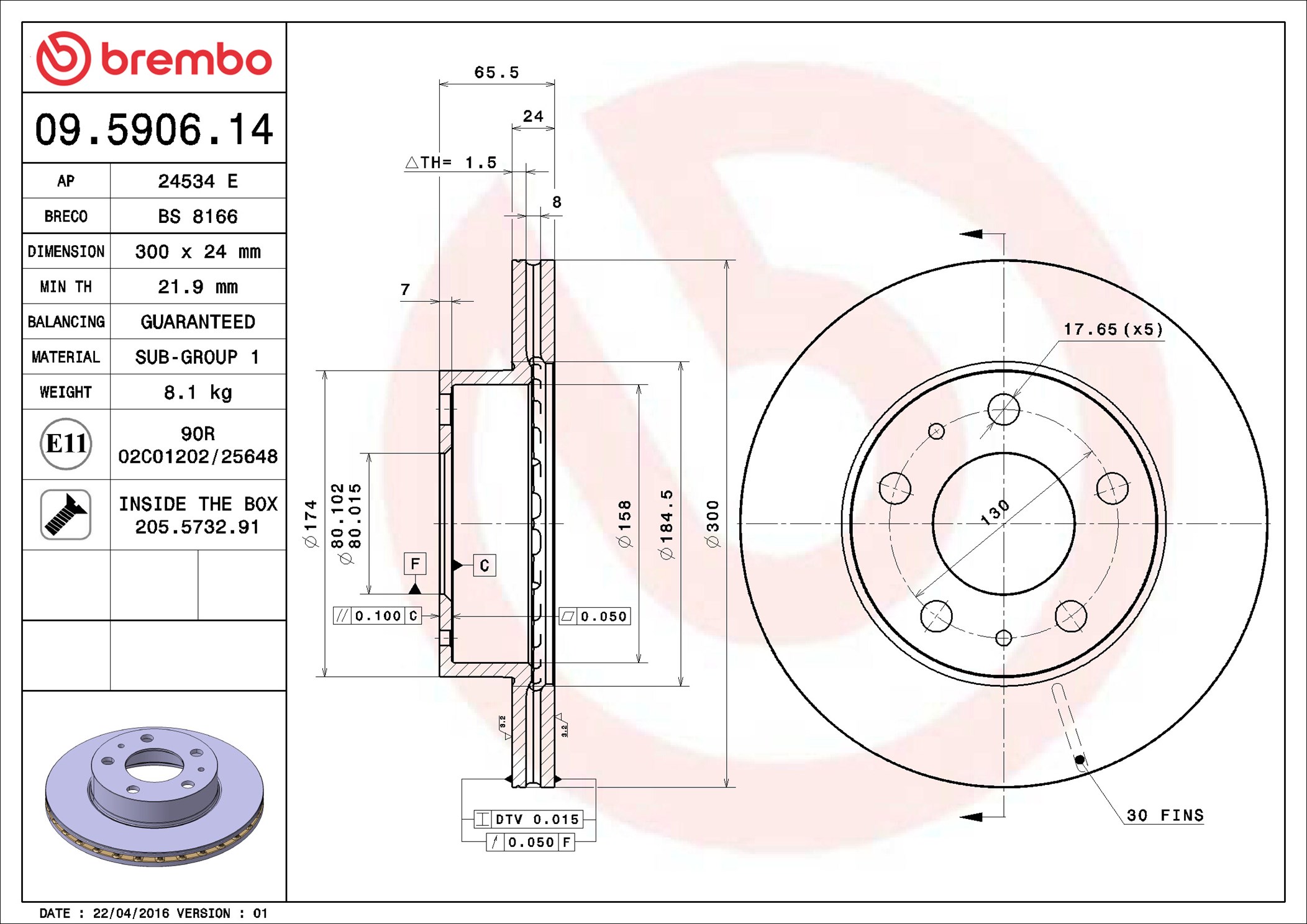 BREMBO 09.5906.14 - Brzdový kotúč