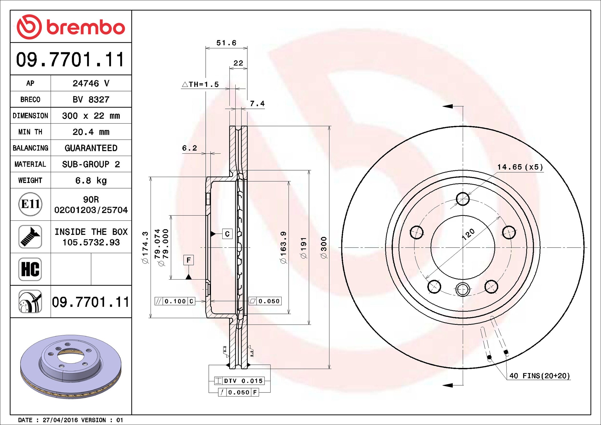 BREMBO 09.7701.11 - Brzdový kotúč