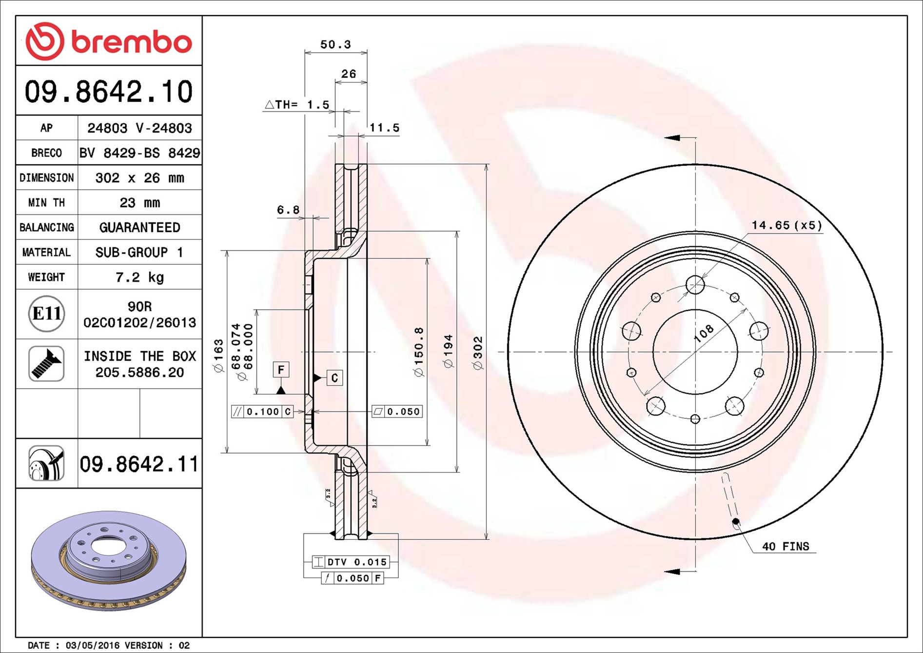 • 302 mm