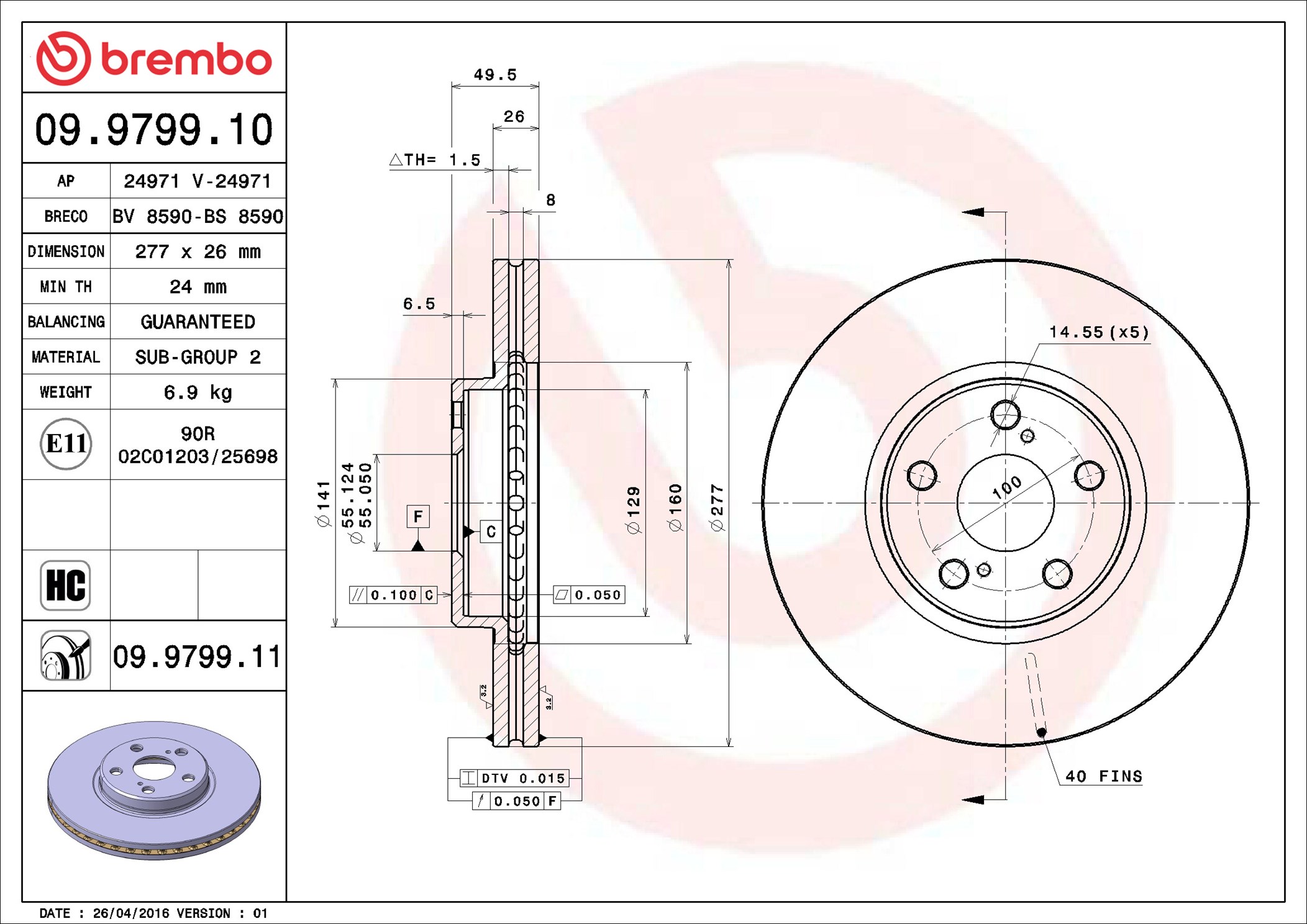 BREMBO 09.9799.11 - Brzdový kotúč