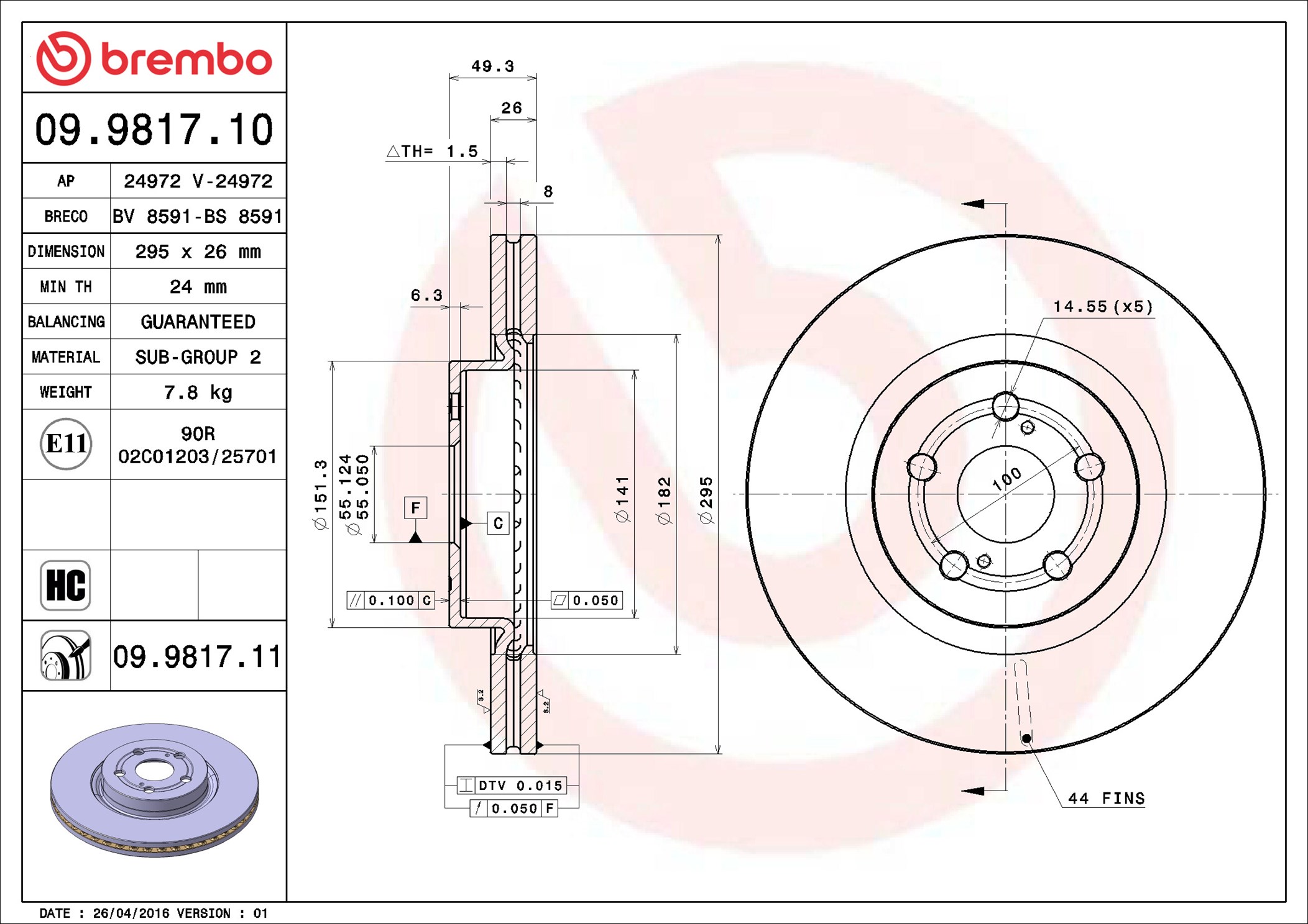BREMBO 09.9817.11 - Brzdový kotúč