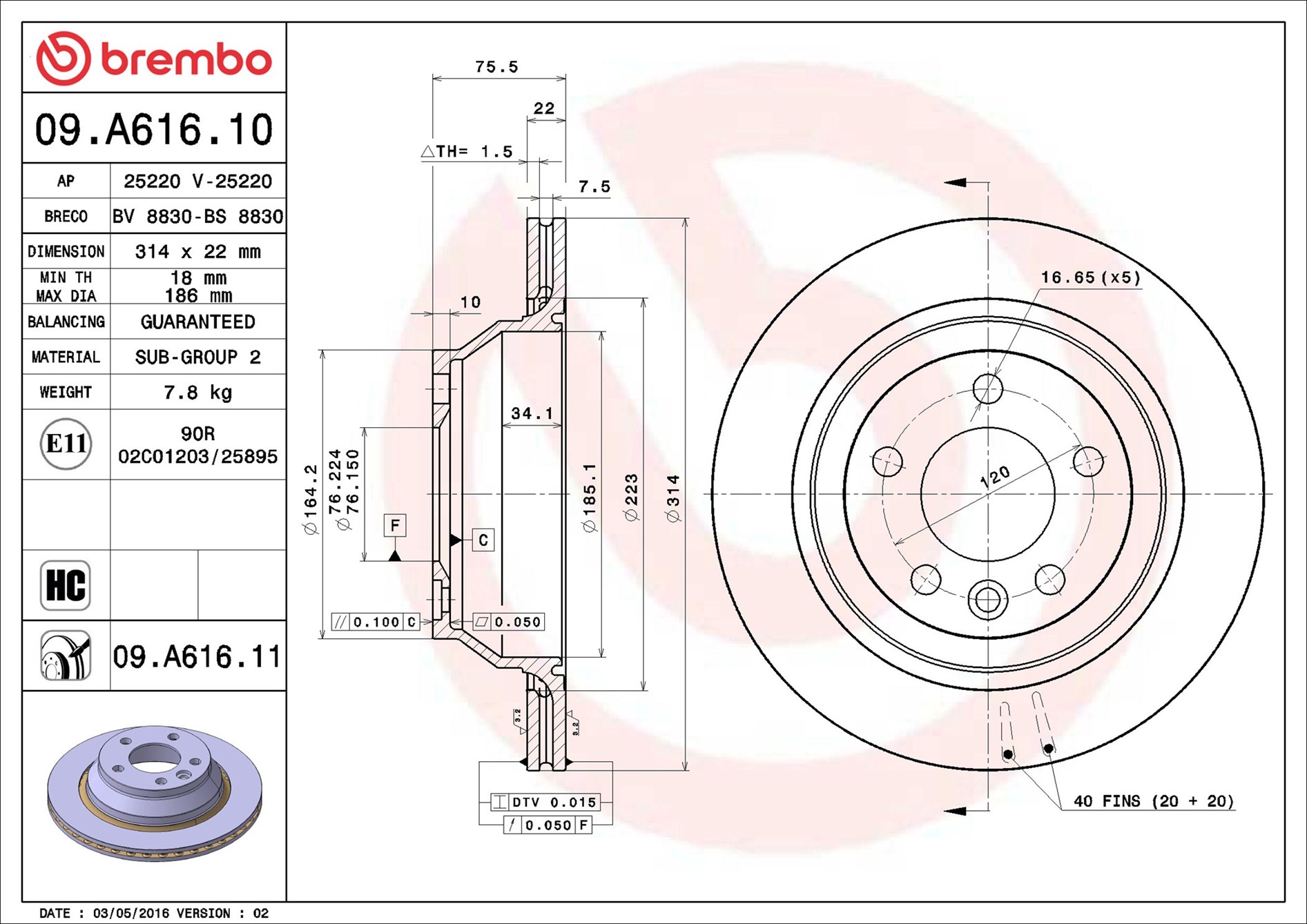 BREMBO 09.A616.11 - Brzdový kotúč
