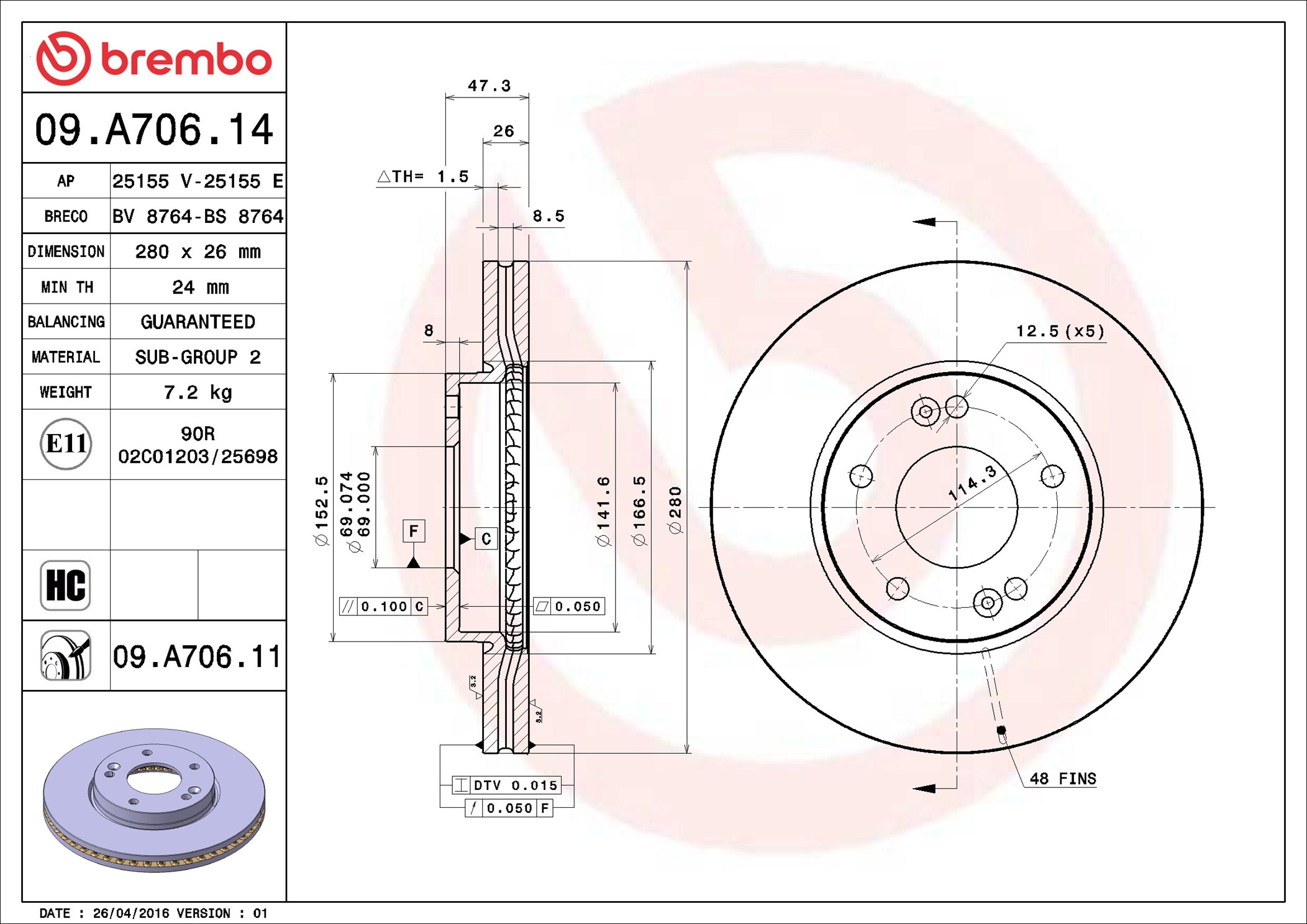BREMBO 09.A706.11 - Brzdový kotúč