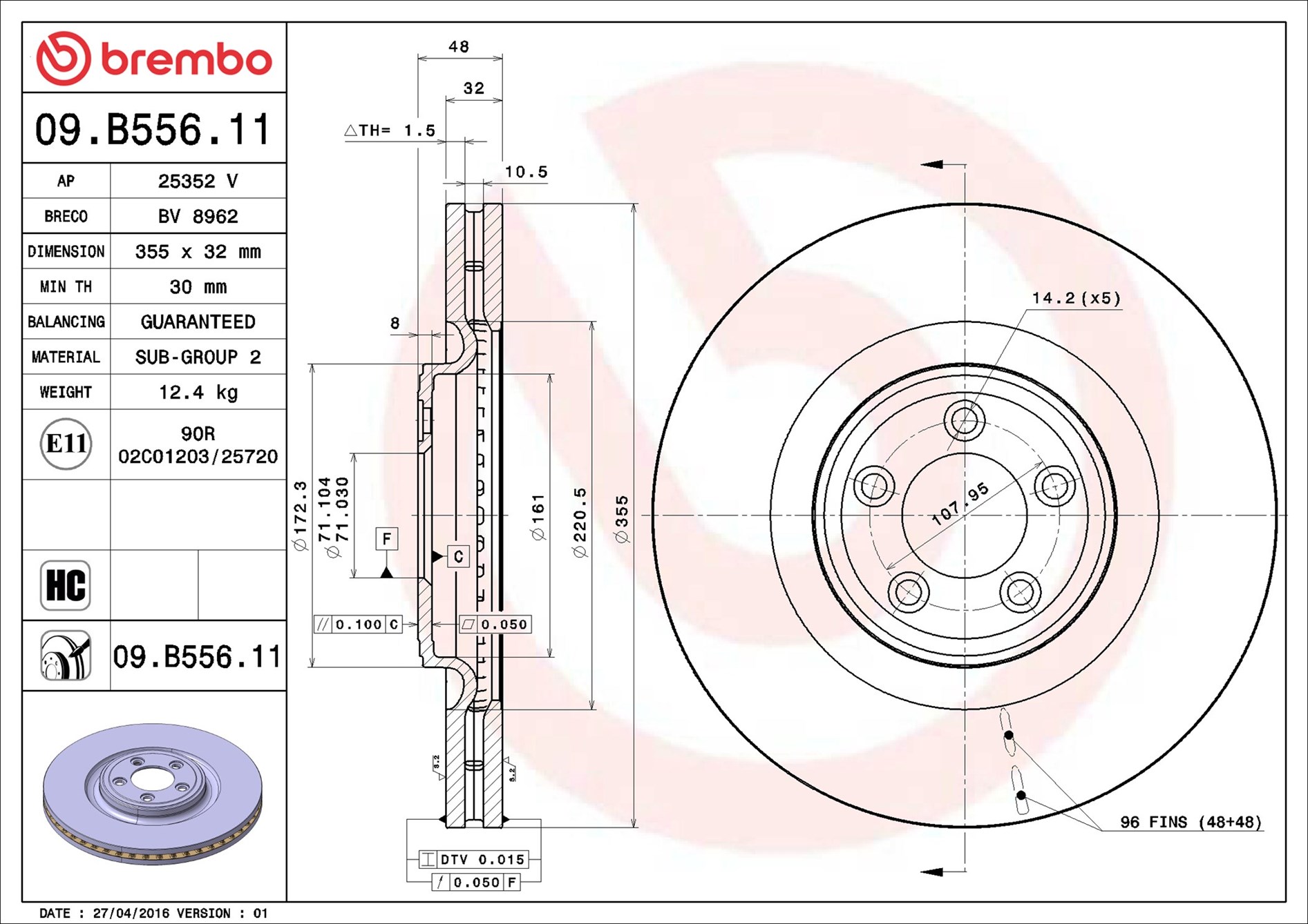 BREMBO 09.B556.11 - Brzdový kotúč