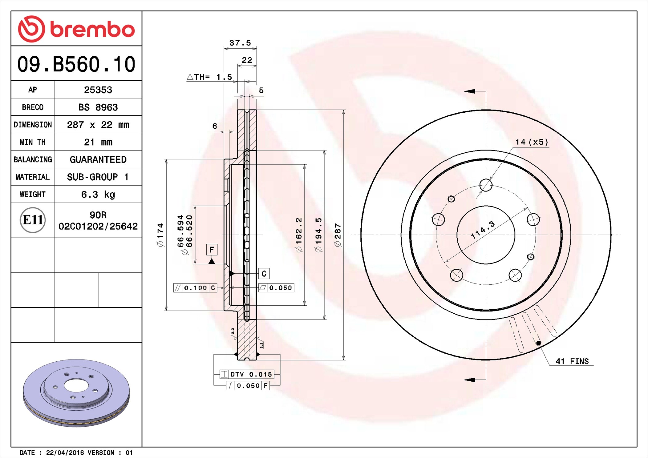BREMBO 09.B560.10 - Brzdový kotúč