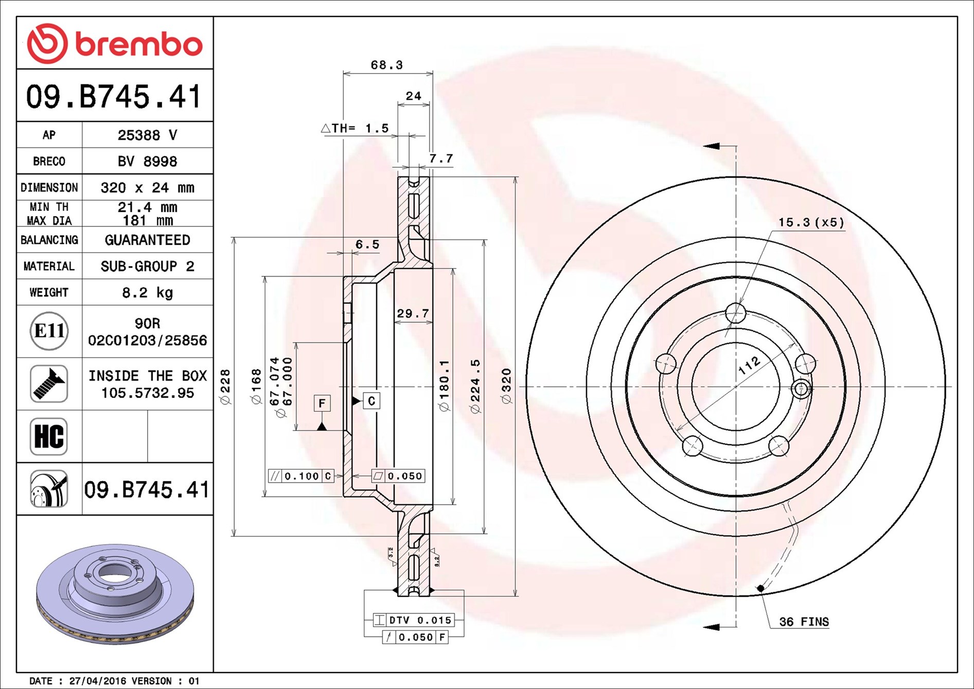 BREMBO 09.B745.41 - Brzdový kotúč