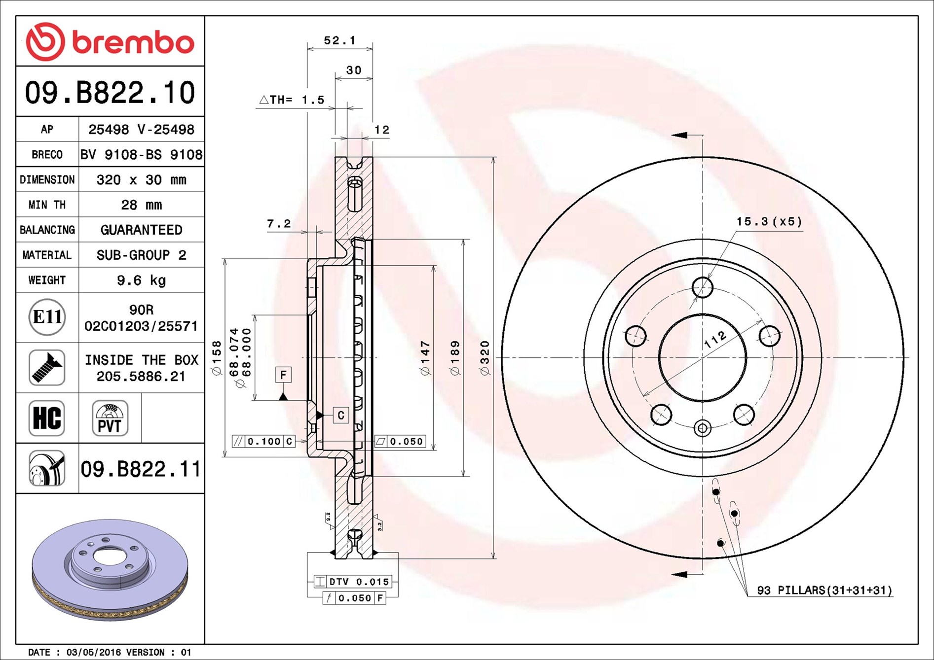BREMBO 09.B822.11 - Brzdový kotúč