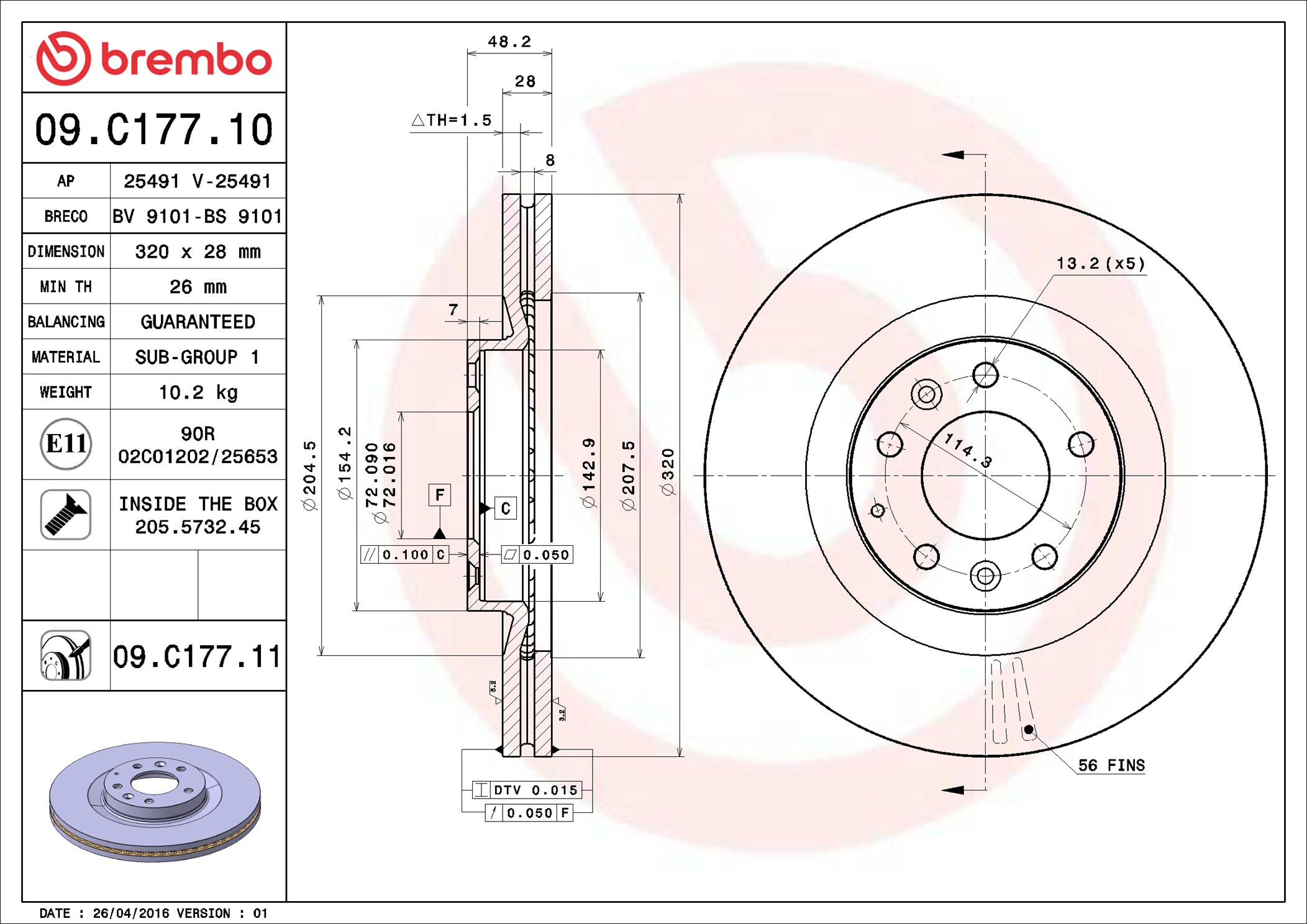 BREMBO 09.C177.11 - Brzdový kotúč