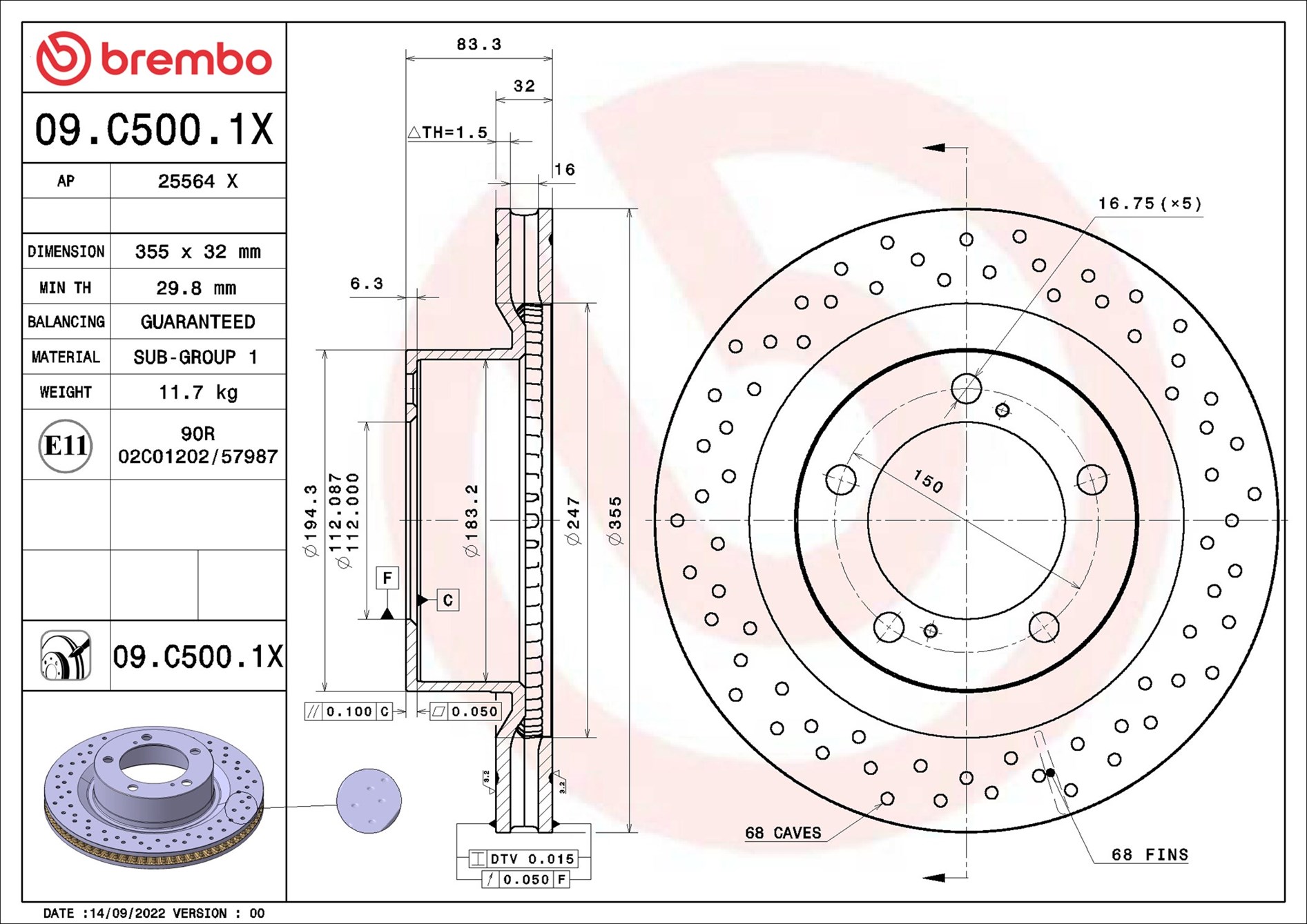 BREMBO 09.C500.1X - Brzdový kotúč