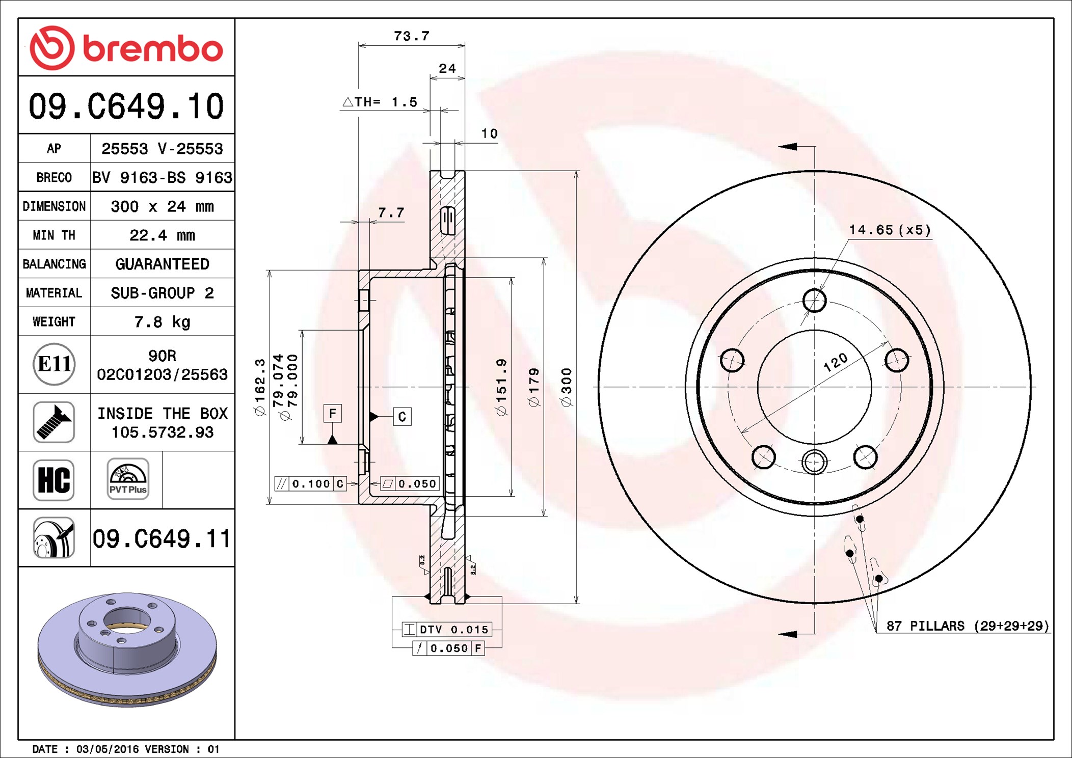 BREMBO 09.C649.11 - Brzdový kotúč
