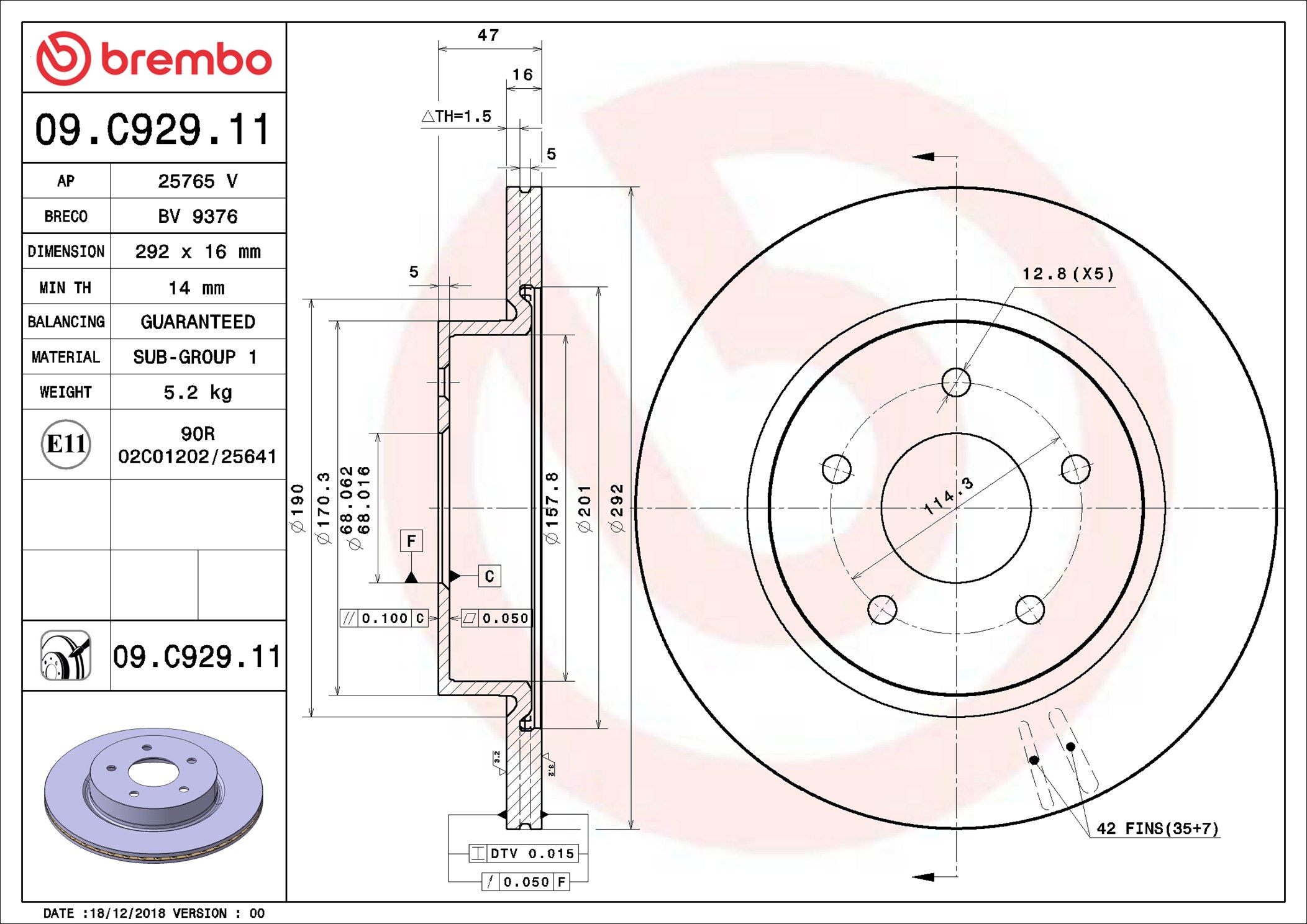 BREMBO 09.C929.11 - Brzdový kotúč
