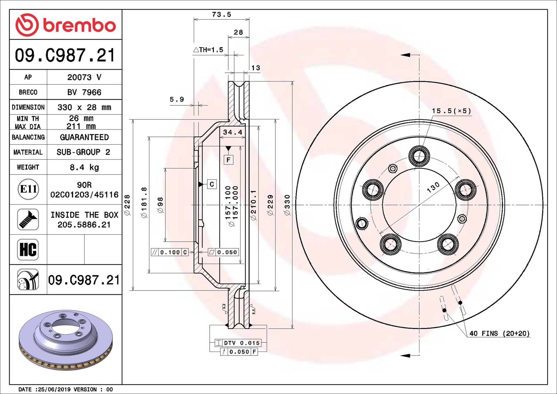 BREMBO 09.C987.21 - Brzdový kotúč