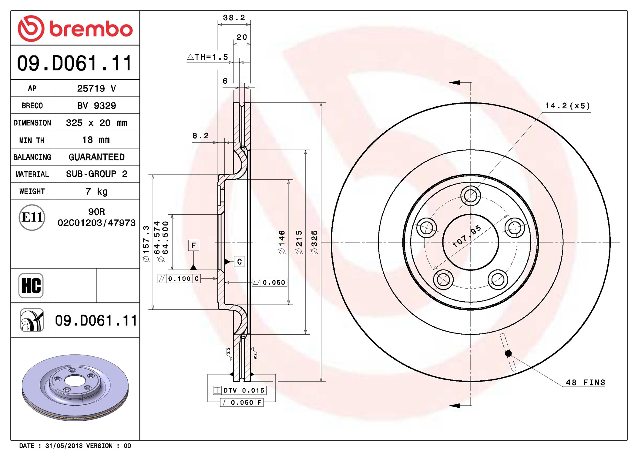 BREMBO 09.D061.11 - Brzdový kotúč
