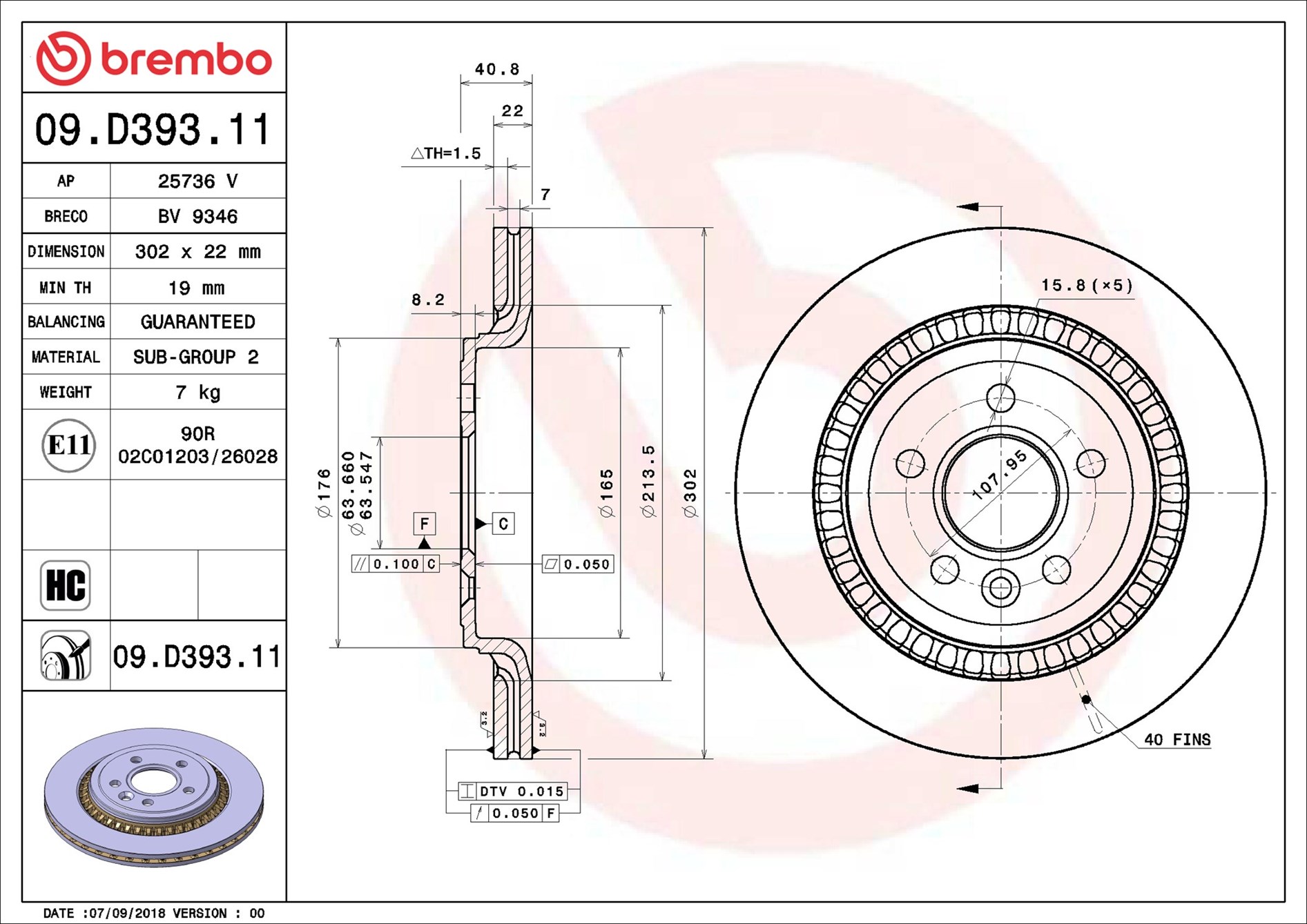 BREMBO 09.D393.11 - Brzdový kotúč