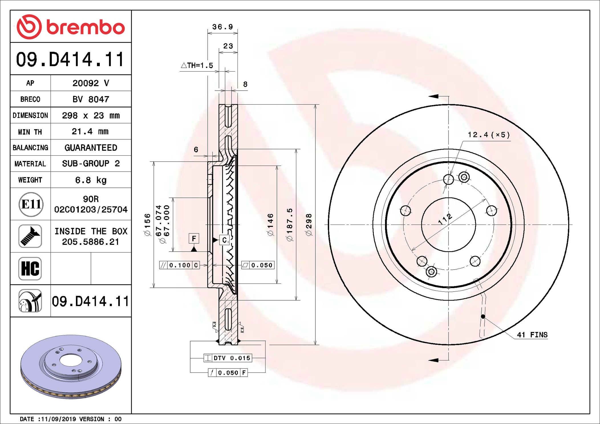 BREMBO 09.D414.11 - Brzdový kotúč