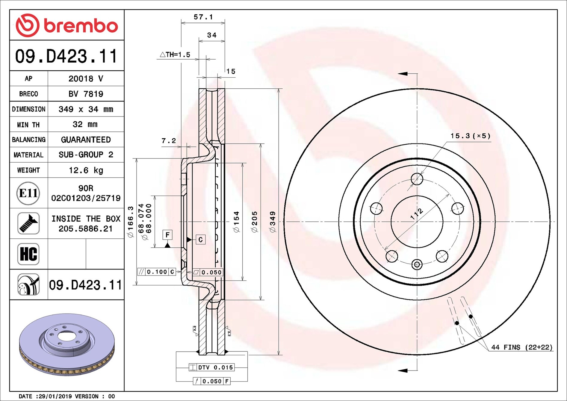 BREMBO 09.D423.11 - Brzdový kotúč