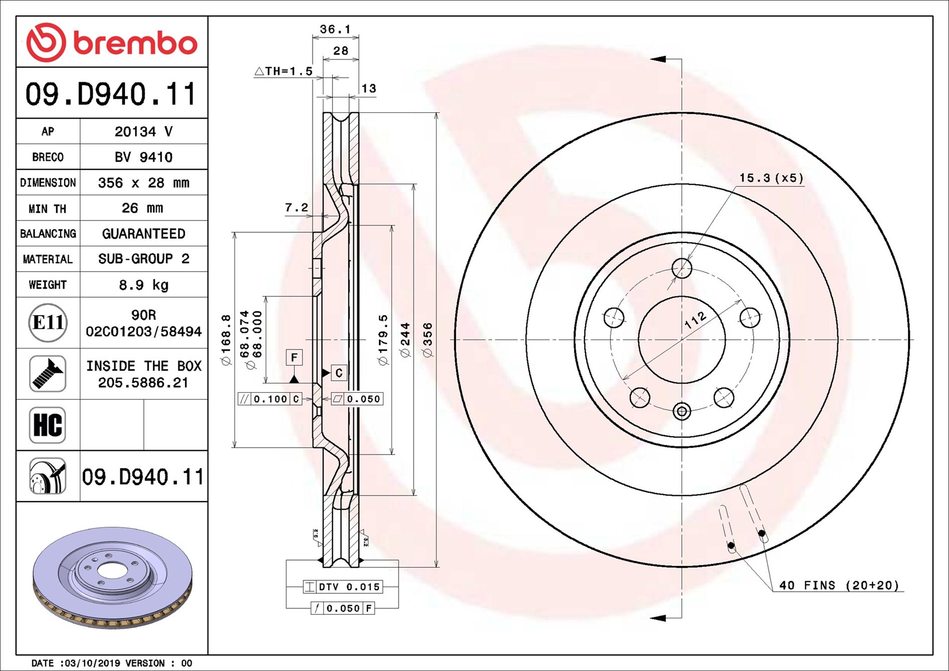 BREMBO 09.D940.11 - Brzdový kotúč