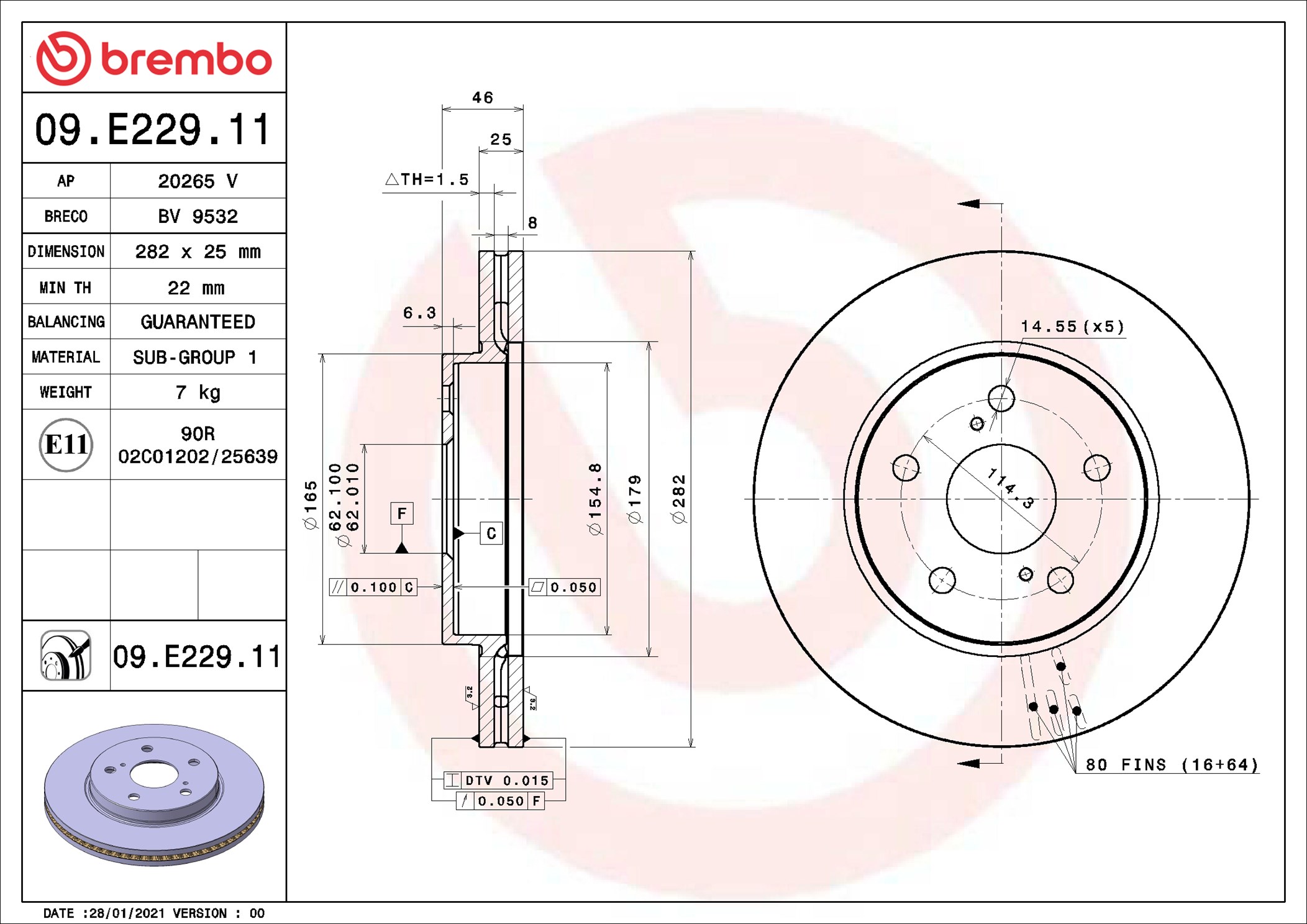 BREMBO 09.E229.11 - Brzdový kotúč