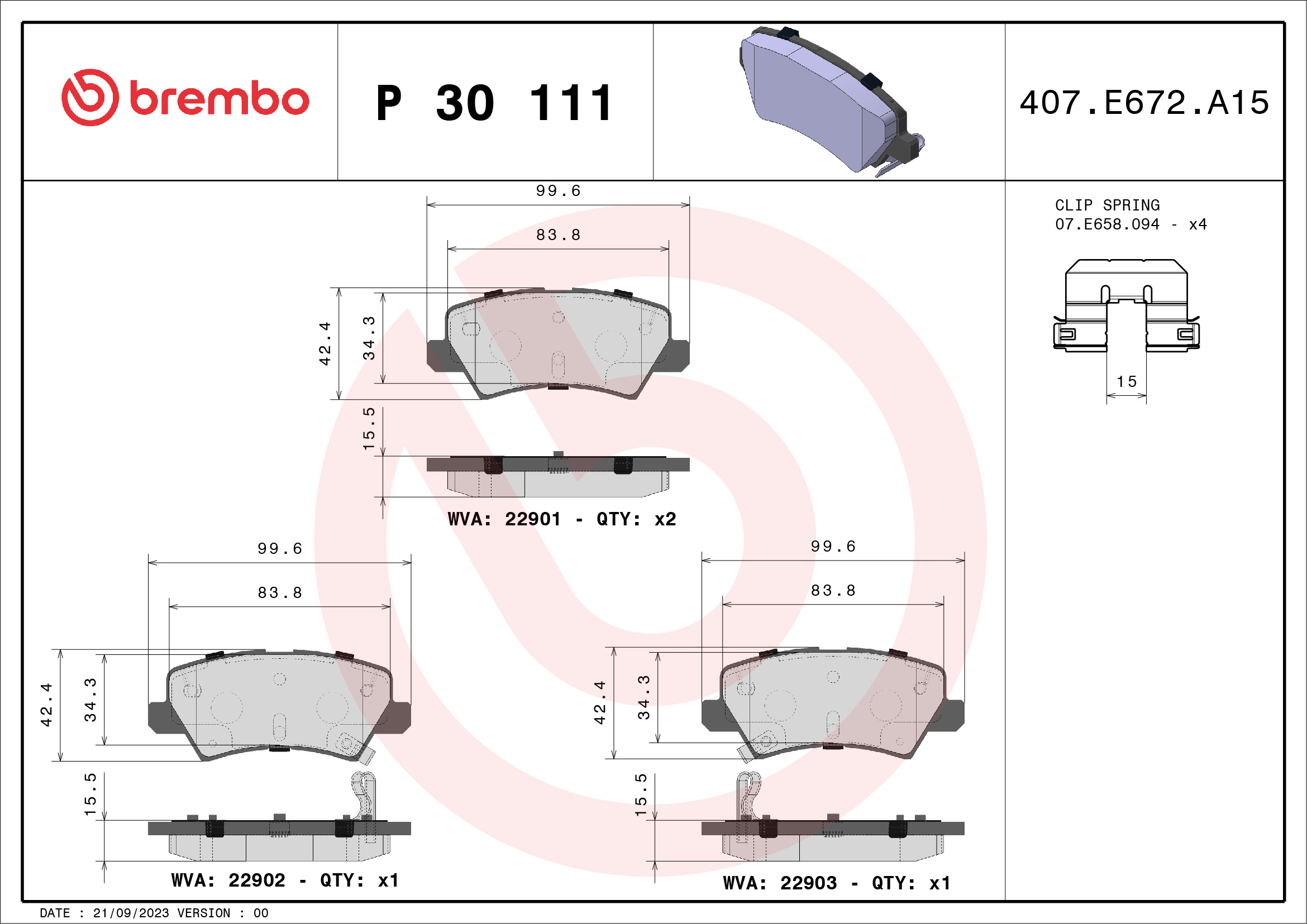 BREMBO P 30 111 - Sada brzdových platničiek, vždy 4 kusy v sade
