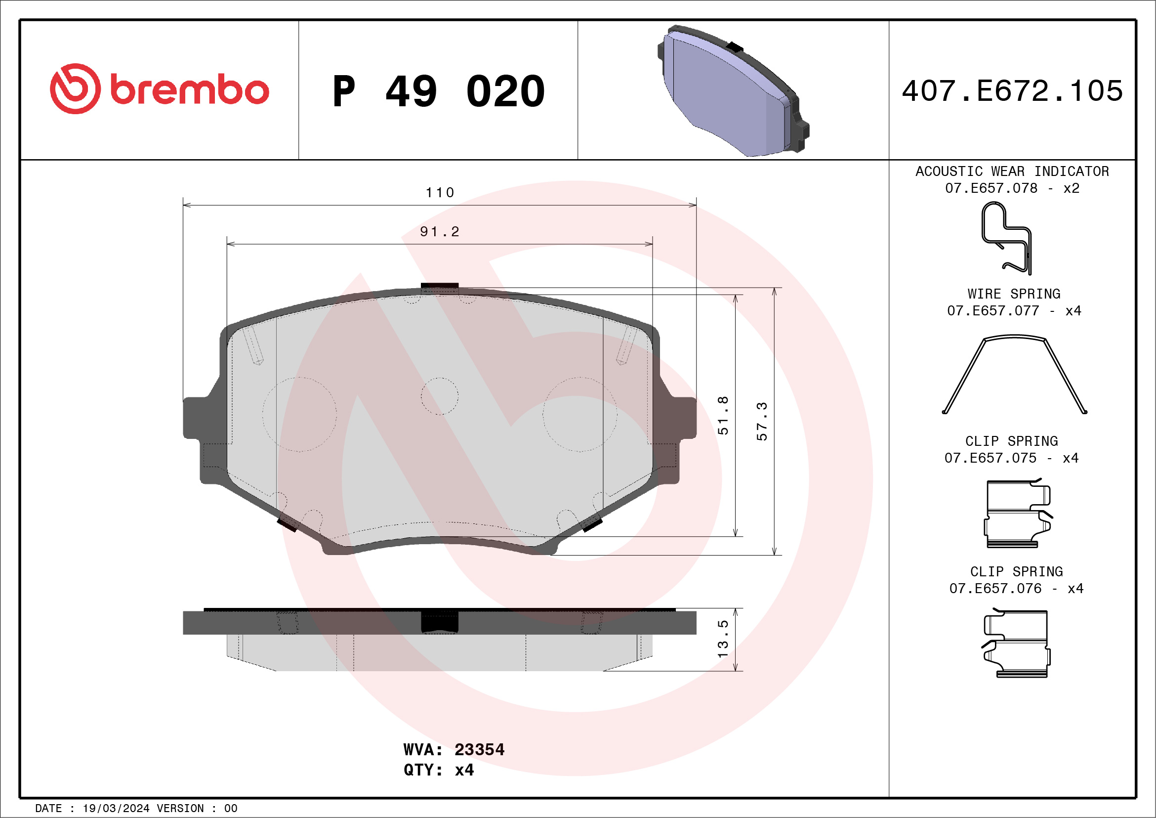 BREMBO P 49 020 - Sada brzdových platničiek, vždy 4 kusy v sade