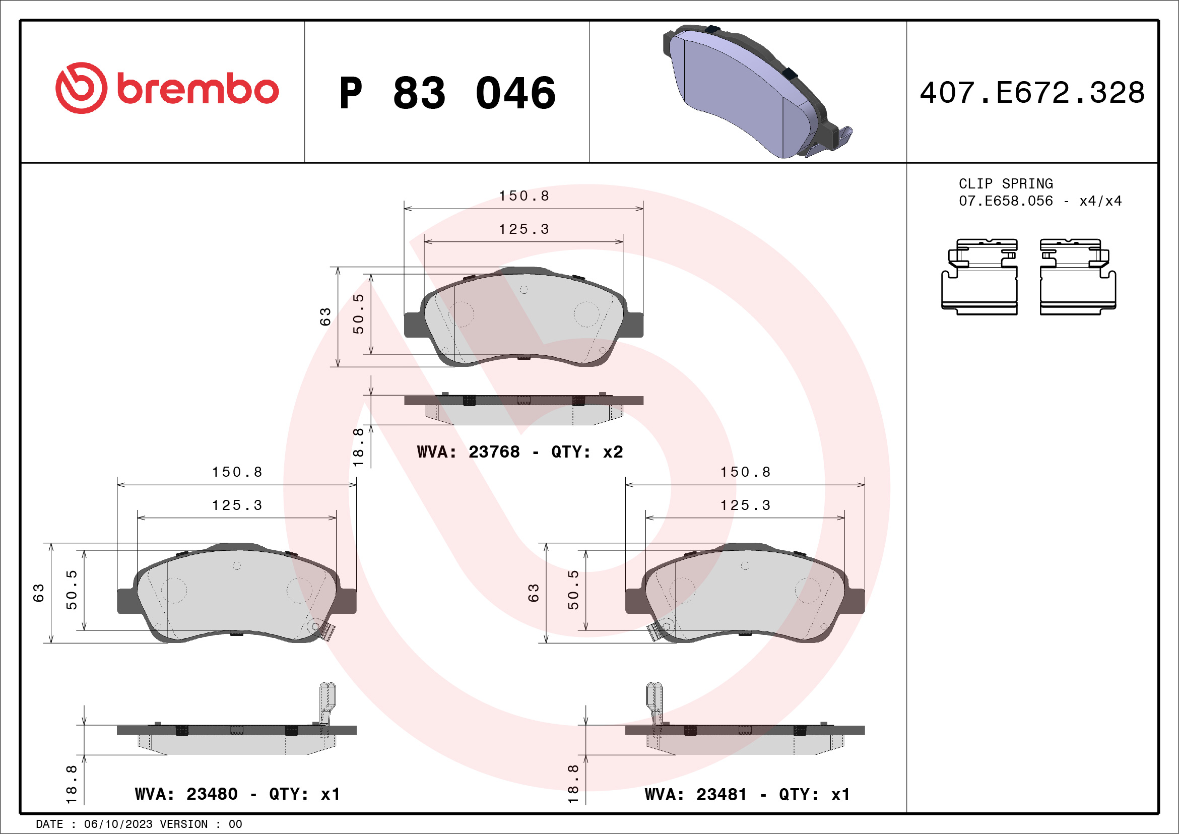 BREMBO P 83 046 - Sada brzdových platničiek, vždy 4 kusy v sade
