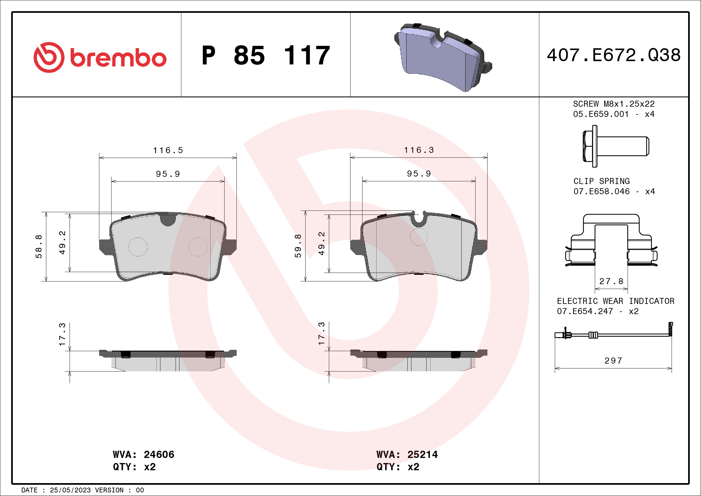 BREMBO P 85 117 - Sada brzdových platničiek, vždy 4 kusy v sade