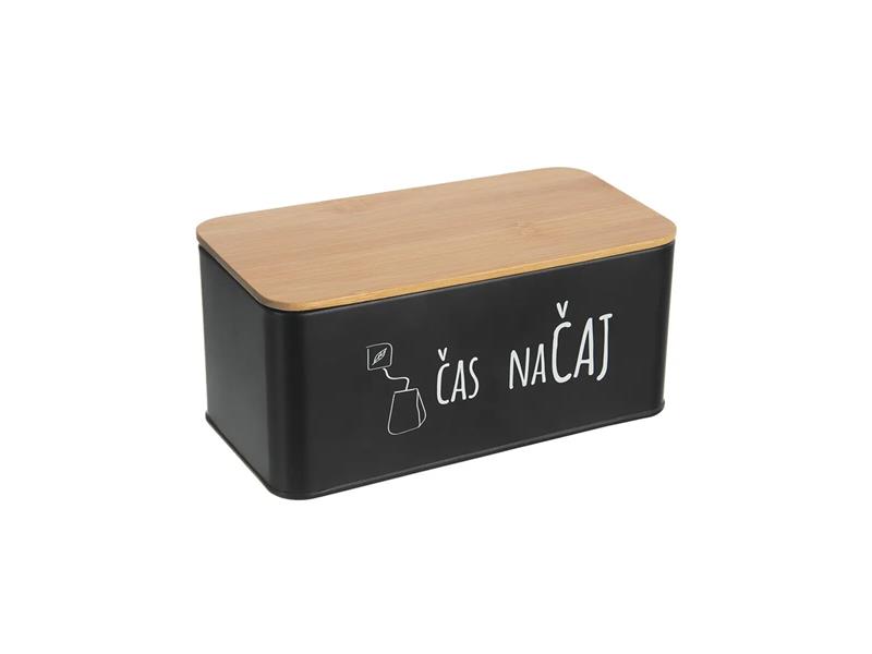 Dóza s víčkem na uložení čajů a čajových směsí. Uvnitř je rozdělena do tří sekcí. Technické parametry:- Materiál: plech, bambus, silikon – těsnění- Rozměry: 20,3x10,3x9 cm