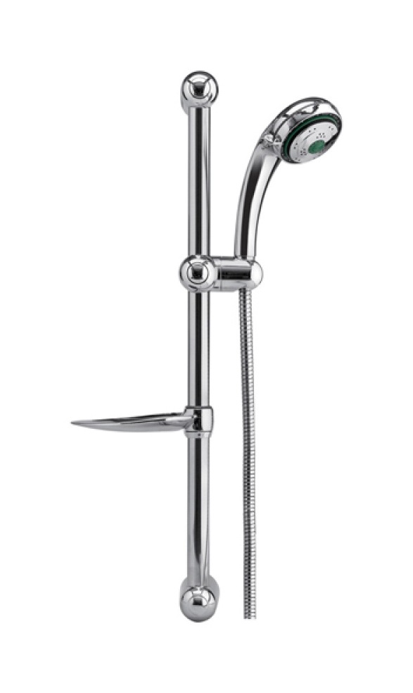 Sprchový set obsahuje tyč z nerezové oceli, určenou k připevnění na stěnu. Na samotné tyči se nachází pohyblivý držák sprchy, sprchu tak můžete výškově nastavit dle libosti. Součástí tyče je i držák na mýdlo.