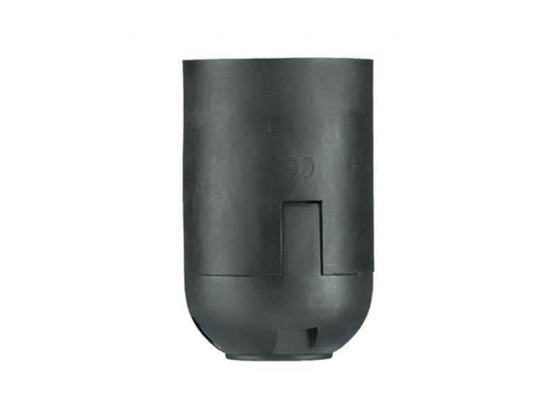 Objímka plastováTechnické parametry:- závit: E27- jmenovitý proud: 4 A- jmenovité napětí: 250 V- vnitřní závit: M10- materiál: termoplast- norma: ČSN-EN 60238- rozměry: 39x62mm- barva: černá