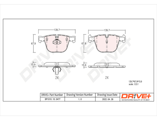 Dr!ve+ DP1010.10.0477 - Sada brzdových platničiek, vždy 4 kusy v sade