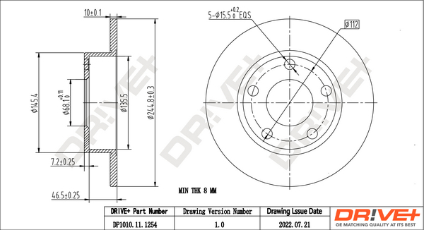 Dr!ve+ DP1010.11.1254 - Brzdový kotúč