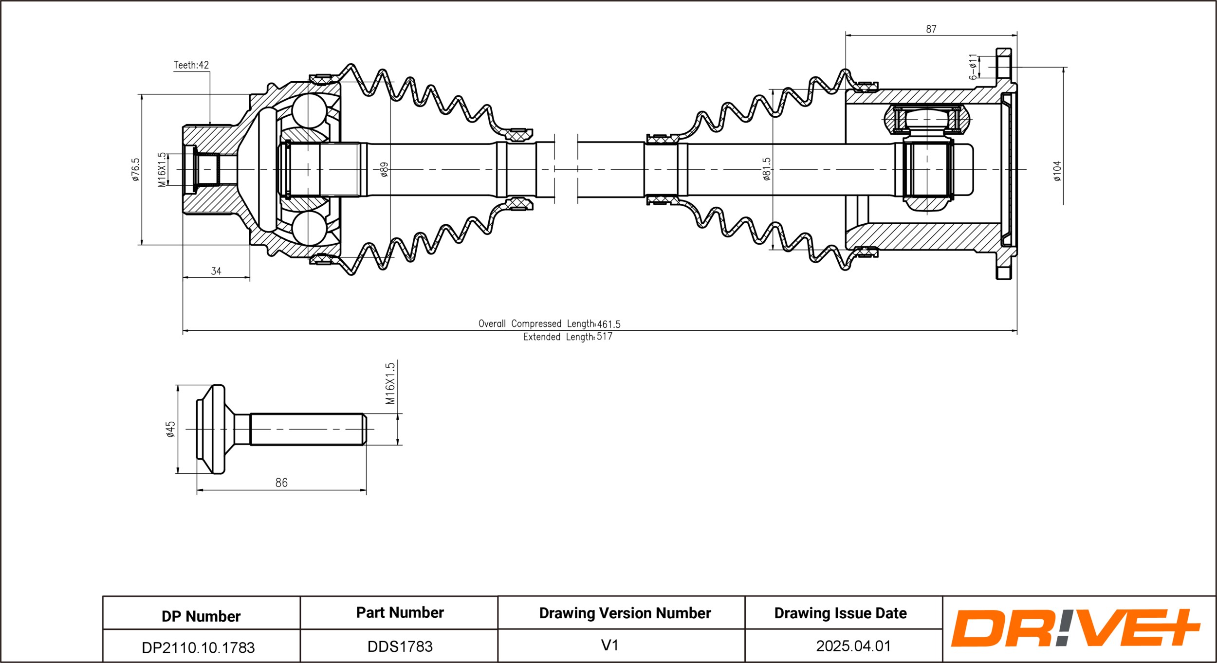 Dr!ve+ DP2110.10.1783 - Hnací hriadeľ