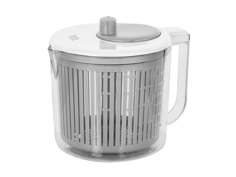 Díky jednoduchému a zároveň funkčnímu designu je sušička na salát Teesa užitečná v mnoha situacích. Průhledná nádoba s pohodlnou rukojetí usnadňuje odstranění přebytečné scezené vody ze zeleniny, aniž byste museli zvedat víko. Po vyjmutí části na sušení salátu můžete nádobu použít i k přípravě dalších pokrmů. Zejména proto, že na jeho stěnách je litrová stupnice, takže nepotřebujete další nádobu na odměřování surovin. Vnitřní část sušičky zase můžete využít i jako sítko.