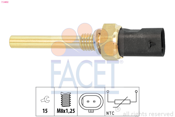 FACET 7.3402 Made in Italy - OE Equivalent - Snímač teploty chladiacej kvapaliny