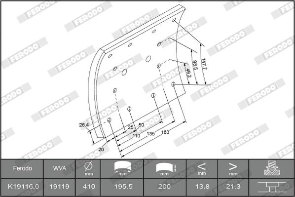 FERODO K19116.0-F3653 - Sada brzdových platničiek, bubnová brzda