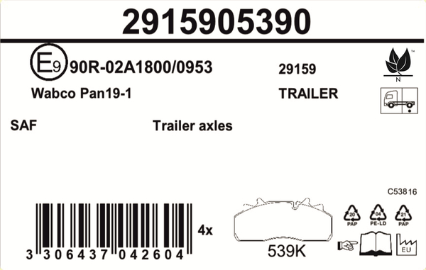 Pre náhradný diel JURID 2915905390 - Sada brzdových platničiek, vždy 4 kusy v sade bohužiaľ nemáme náhradu.