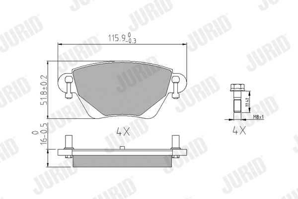 JURID 573012J - Sada brzdových platničiek, vždy 4 kusy v sade