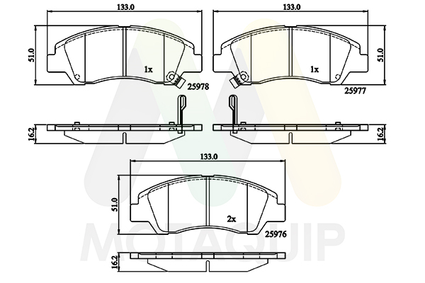 MOTAQUIP LVXL1812 - Sada brzdových platničiek, vždy 4 kusy v sade